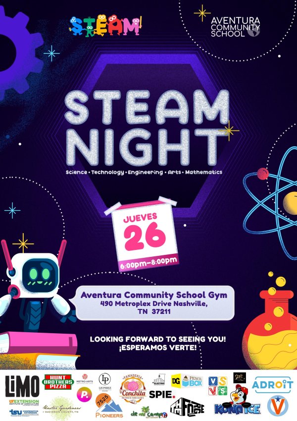 El programa de STEM (Ciencia, Tecnología, Ingeniería y Matemáticas) de la Escuela Aventura es un programa nocturno realizado en Aventura Community School. El objetivo de este programa es inspirar a los estudiantes a perseguir un enfoque académico STEM en el resto de su vida, y para ayudarlos a prepararse para carreras STEM en el futuro. Este evento requiere 48 voluntarios.
