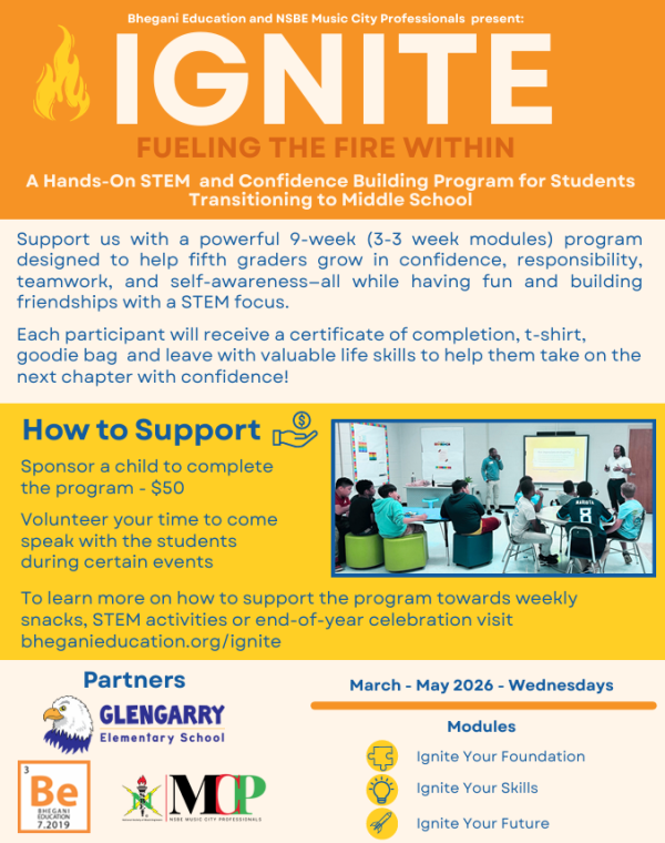 Bhegani Education and NSBE Music City Professionals Present: IGNITE - Fueling the Fire Within: A Hands-On STEM and Confidence Building Program for Students Transitioning to Middle School